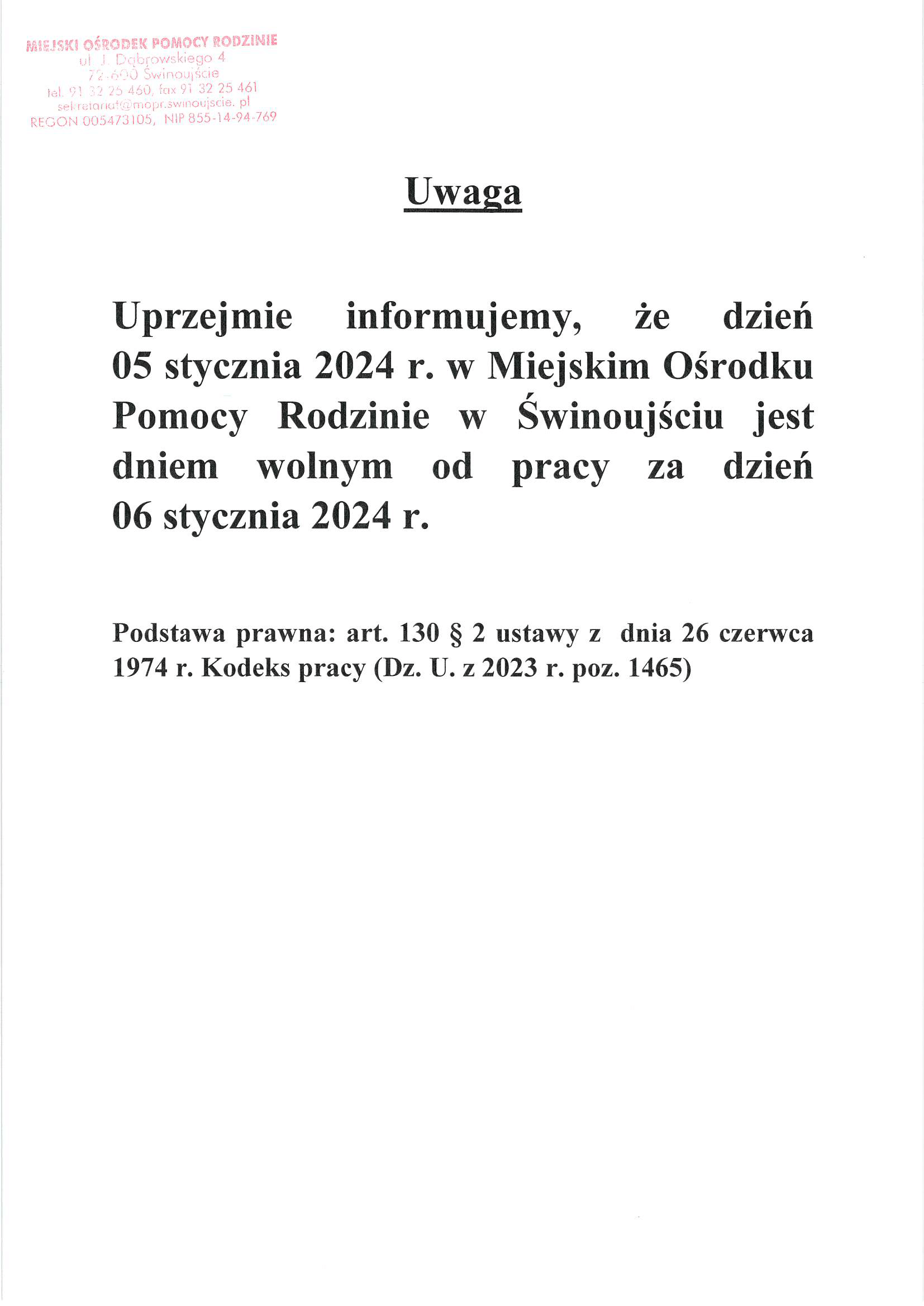- Osoby bezdomne nie posiadające tytułu do ubezpieczenia zdrowotnego, spełniające kryteria ustawowe, otrzymują prawo do świadczeń zdrowotnych finansowanych ze środków publicznych, na podstawie decyzji Dyrektora Miejskiego Ośrodka Pomocy Rodzinie w Świnoujściu.